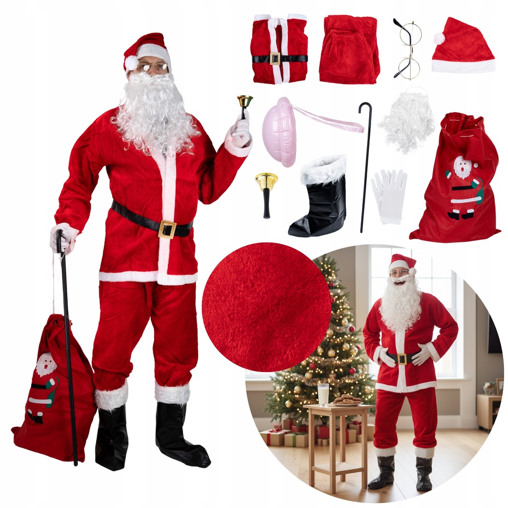 ✓ Ein professionelles Weihnachtsmannkostüm aus weichem, angenehm anzufassendem Plüsch in einem tiefen Rotton. Das Set besteht aus 12 sorgfältig ausgewählten Teilen, die einen kompletten, festlichen Look ergeben.
