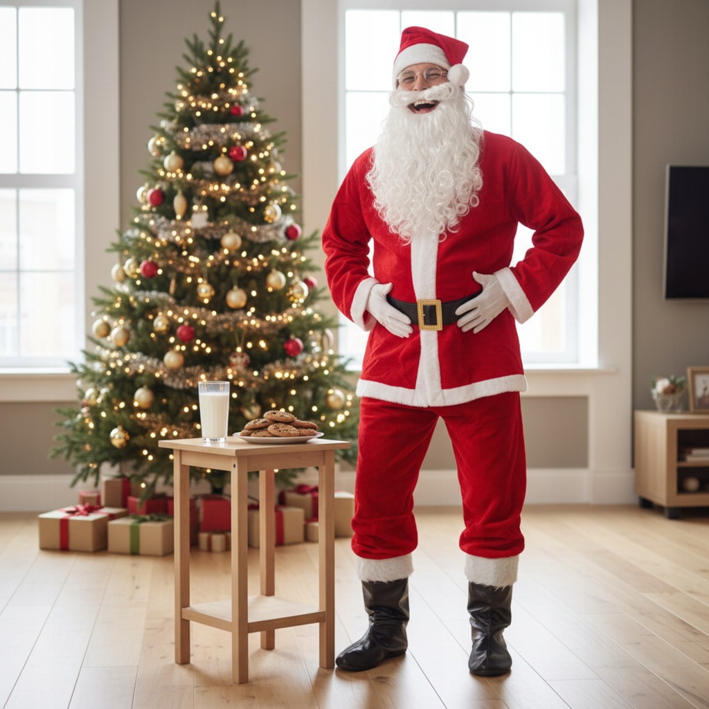 Das Outfit fängt die festliche Atmosphäre perfekt ein und macht jedes Treffen mit Kindern oder Veranstaltungsteilnehmern unvergesslich.