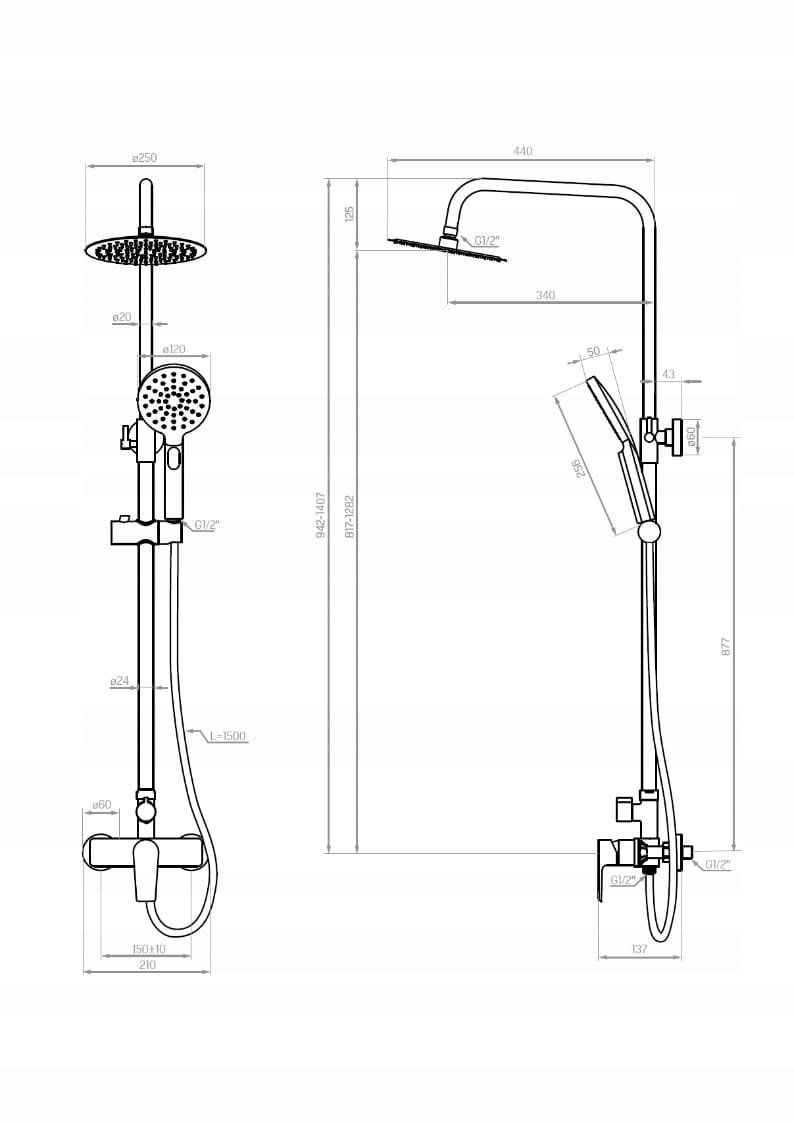 KOLUMNA NATRYSKOWA Z BATERIĄ PAH_60OB
